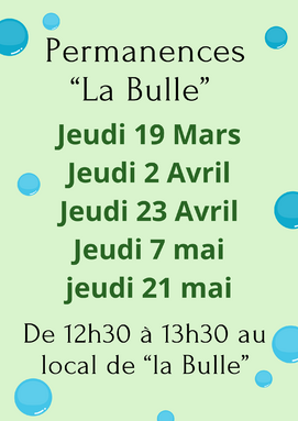 1 jour : permanences tous les 15 jours, les jeudis (semaines paires)