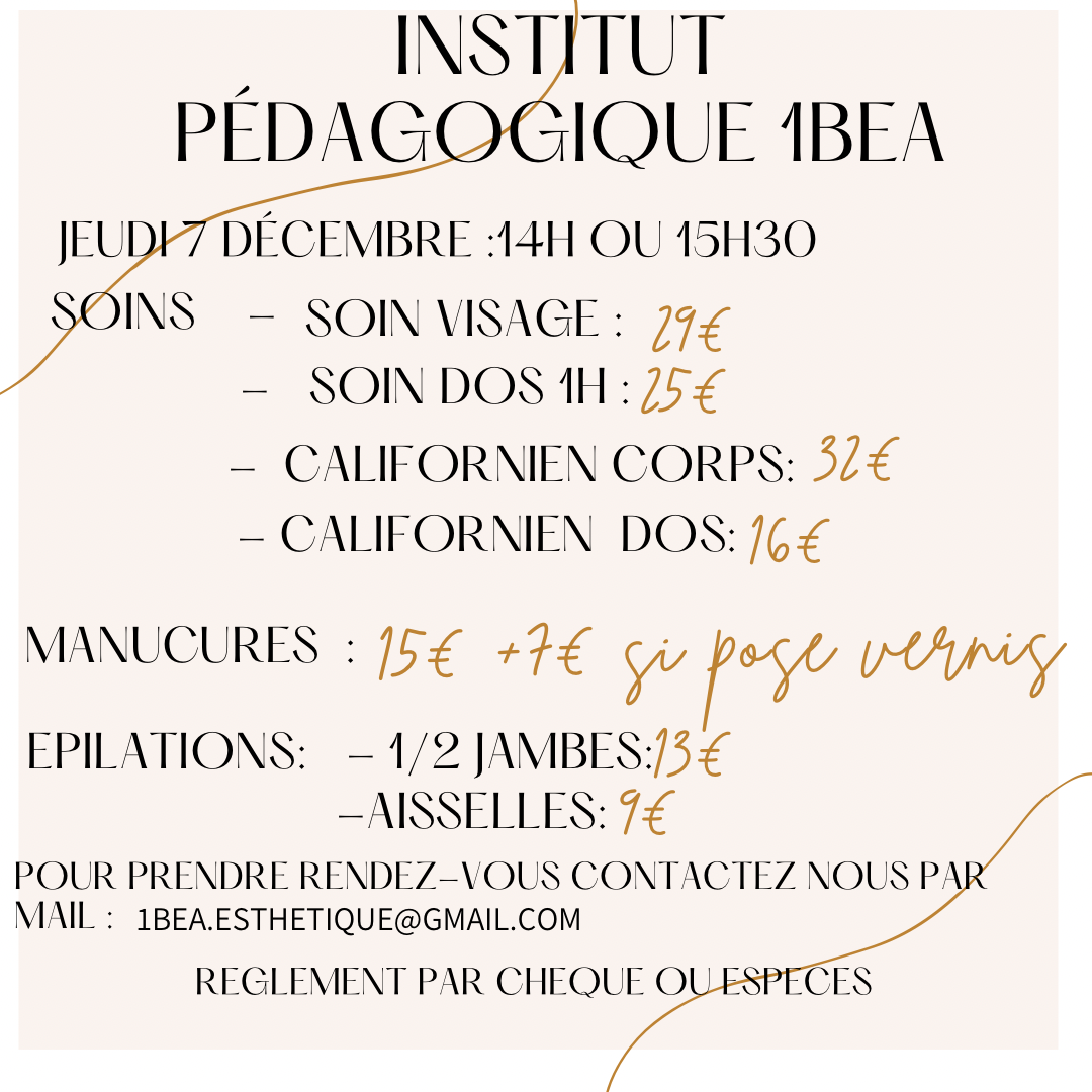 Vous pouvez prendre rendez-vous sur l'adresse de notre classe: 1BEA.esthetique@gmail.com
